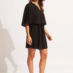 Seafolly Ladies Gia Scallop Kaftan – Black