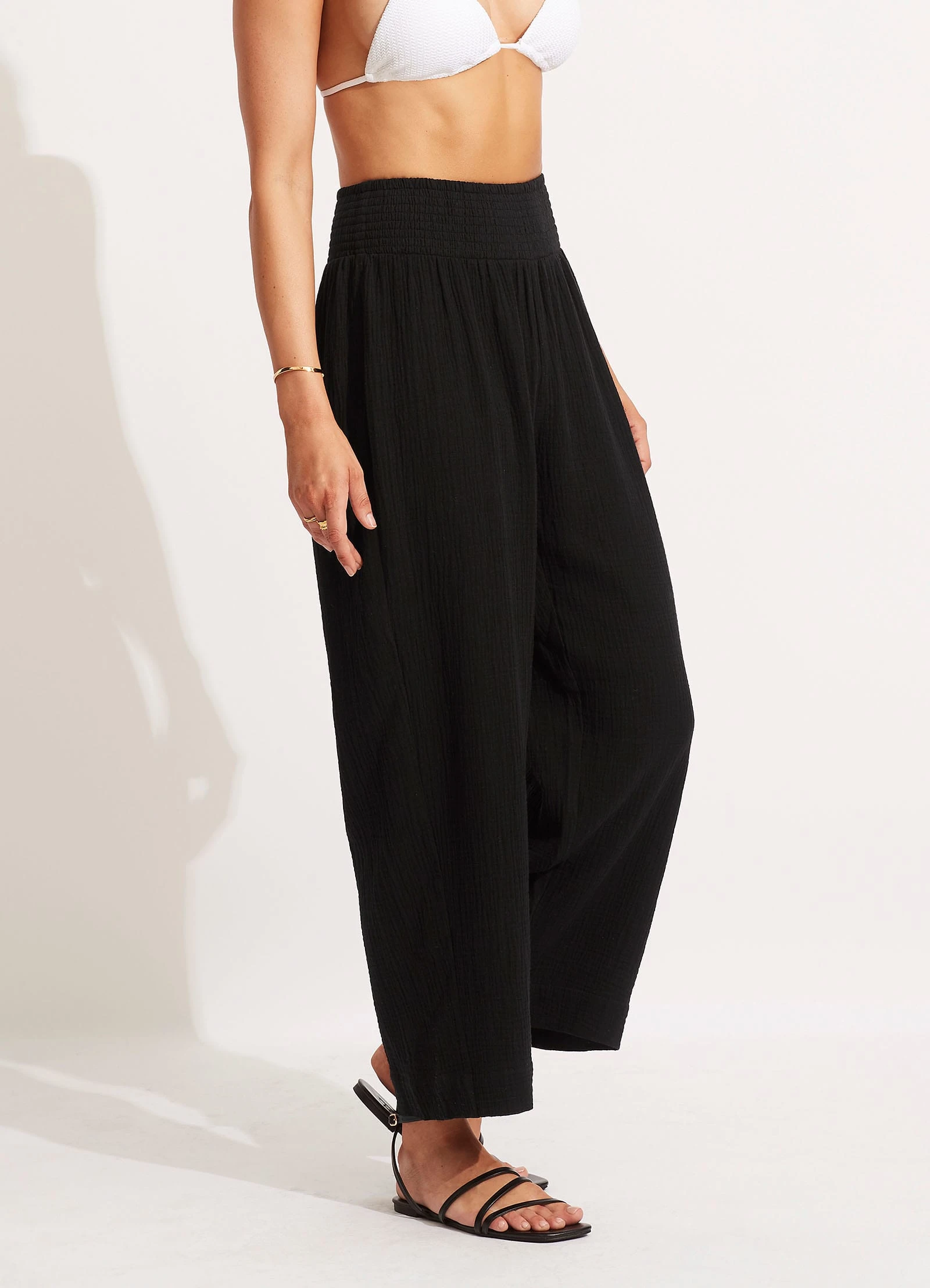 Seafolly Ladies Double Cloth Shirred Pants – Black