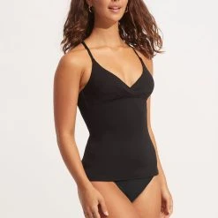 Seafolly Ladies Seafolly Collective Wrap Front Tankini Top – Black